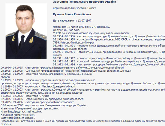 При цьому Ренат Кузьмін є кар’єрним прокурором. Судячи з біографії, розміщеної на сайті Генпрокуратури, Кузьмін працює в цій структурі, починаючи з 1991 року.