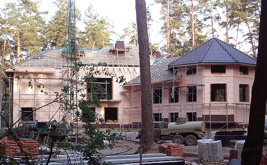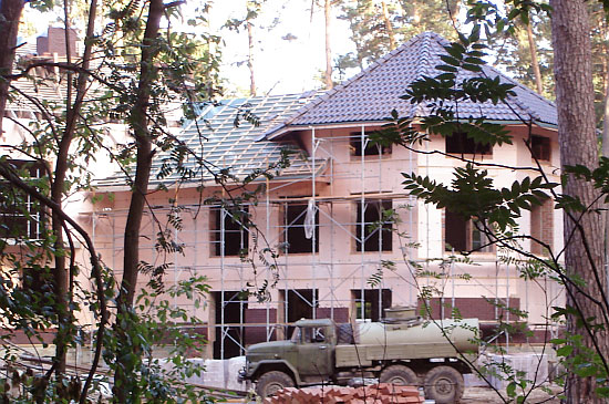 Загальну площу будинку Кузьміна, який вже збудований під дах, можна оцінити в 400-600 квадратних метрів.
