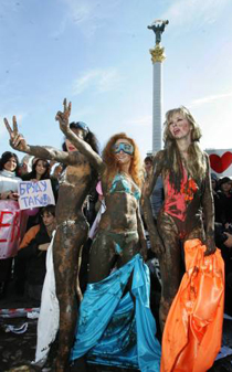 Политические грязные игры на главной площади страны. Столичные студентки из женского движения "Фемен" в знак протеста против досрочных парламентских выборов устроили настоящие бои в грязи, передает 5 канал. Грязью поливали украинские политические силы.