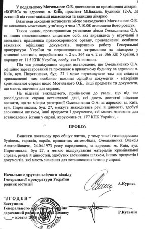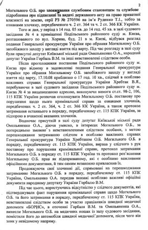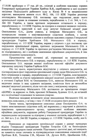 И тут началось форменное безобразие. Депутат Киевсовета Омельяненко... вырвал из рук прокурорского работника постановление о возбуждении уголовного дела, постановление о взятии под стражу и протокол, разъясняющий права подлежащему задержанию А.Могильному. И быстро передал эти важные процессуальные документы своему коллеге — г-ну В.Горбалю...