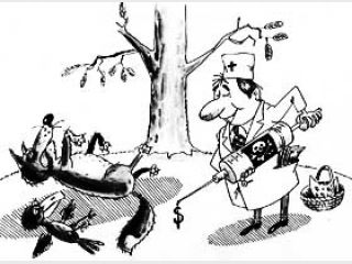 Проілюструємо схему "державницької діяльності" Держкомветмедицини на конкретних прикладах. Так, у 2008 році зі 125 млн. гривень, спрямованих на виконання Державної цільової програми протиепізоотичних заходів (протидії епідеміям), 59,2 млн. гривень були витрачені на закупівлю пероральної антирабічної вакцини проти сказу, що застосовується для щеплення диких хижих тварин, які оточують людей. Зазначені кошти мали б піти на поліпшення епідемічної безпеки громадян. Проте що маємо?