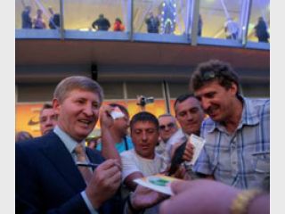 В.ЮЩЕНКО поблагодарил президента ФС “Шахтер” Рината АХМЕТОВА за новый стадион и призывал брать пример с Донецка.