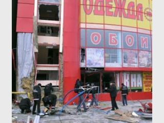 Возле места второго взрыва (торгового центра "Голден Плаза") также были разбиты стекла в витринах магазина, и в течение дня шли восстановительные работы.