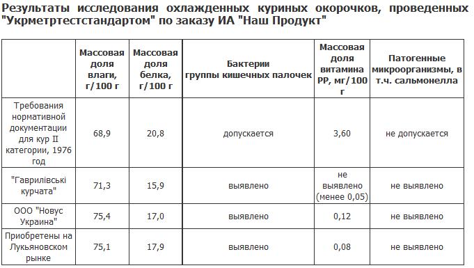 Результаты исследования охлажденных куриных окорочков, проведенных "Укрметртестстандартом" по заказу ИА "Наш Продукт"