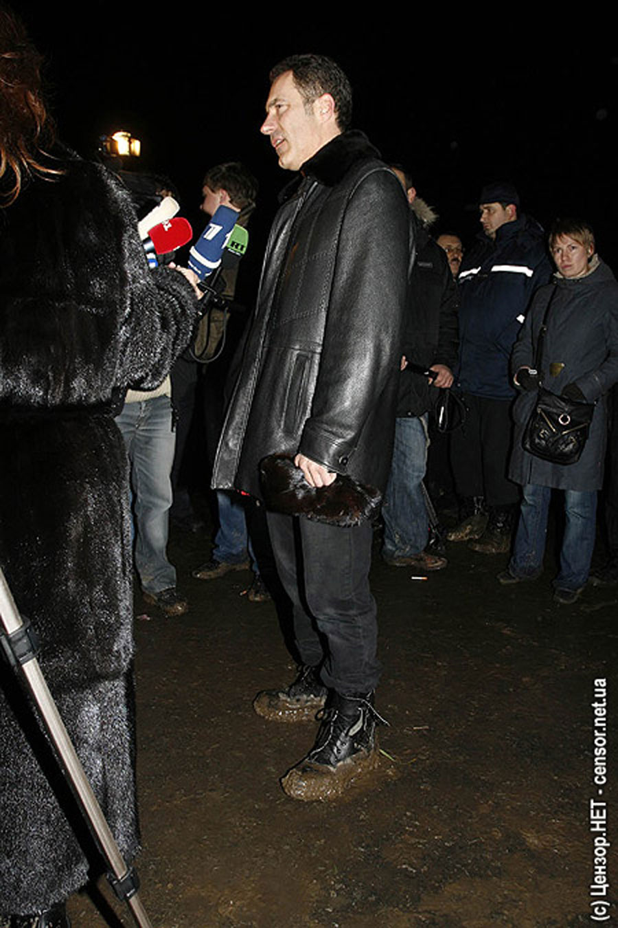 Министр транспорта Рудьковский дает интервью на месте происшествия. Автор фото — Юрий Тимошенко  censor.net.ua