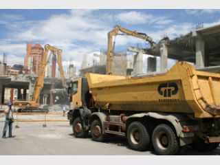По словам Рябоконя, несмотря на отсутствие денег, технику никуда не убирают со стройплощадки — краны и "щупальца" выглядывают из-за невысокого зеленого забора, которым обнесена стройка "Троицкого". Кроме того, людей держат на рабочих местах в полной боевой готовности. Авось дадут команду крушить!