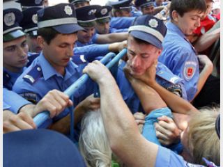 Огрядна літня пані з картатою "заробітчанською" торбою тримає за руку одного з міліціонерів, які перегороджують вулицю біля Будинку офіцерів. "Пропустіть, рідненькі, — плаче вона, — я не тутешня, я з Донецька, відстала від своєї групи, загубилася, це ж чуже місто, а вони онде, я їх звідси бачу". Жінка показує на протилежний край вігородженої території, де вимахують червоно-синіми прапорами кілька десятків "вітренківців". "Не можна, — каже міліціянт, — треба обійти з іншого боку, ідіть за молодим чоловіком". Молодим чоловіком виявився кореспондент, що саме взявся обходити тим же маршрутом. "Як добре, що вас зустріла, — каже жінка, втираючи сльози, — я ж лише відвернулася забрати торбу, а їх уже й немає — аякже, семеро одного не чекають!". Як виявилося, пані Людмила говорила про групу "колег"-вітренківців із Донеччини, яка недавно прибула до відкриття навчань "Сі Бриз" як підкріплення до антинатовського наметового містечка під Одесою. Кожен день їх возять протестувати до різних пов’язаних із навчанням військових і цивільних установ. Керівник групи вранці провів перекличку, централізовано розплатився за проїзд, але далі, видно, не дуже пильнував своєї пастви.