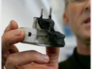 Работник ”Укрметтестстандарт” демонстрирует воспламеняемость перьевого боа
