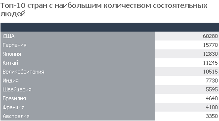Топ-10 стран с наибольшим количеством состоятельных людей