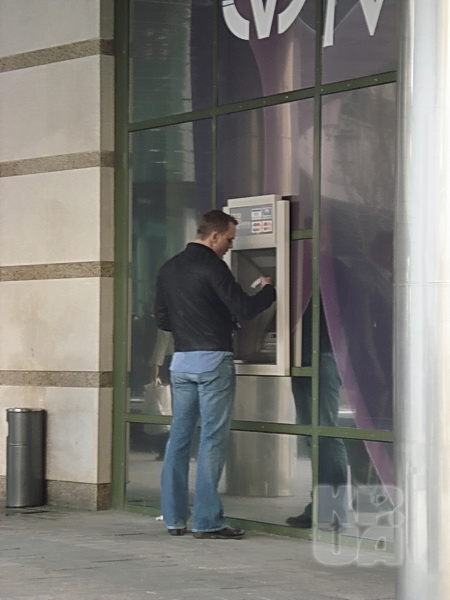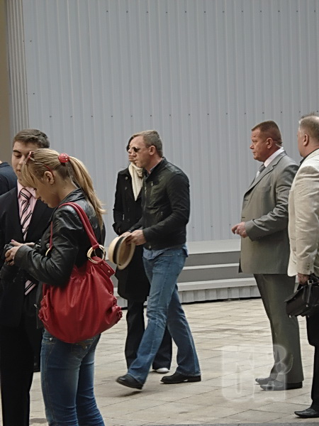 Публика изумленно наблюдала за агентом 007, который занимался вполне обыденным делом — снимал деньги из банкомата, расположенного в центре Киева (район Бессарабского рынка). Получив банкноты, он присоединился к компании, которая дожидалась его в стороне. Среди спутников Крейга была замечена его жена — шотландская актриса Фиона Лаудон, одетая в черно-белый полосатый плащ, и телохранитель.